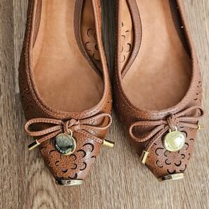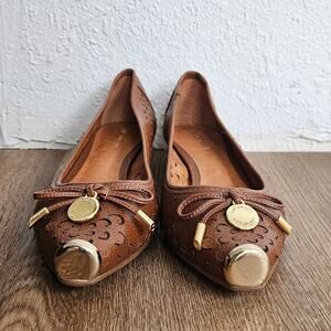Luz da Lua Brown Ballet Flats with Floral Cutouts US 6