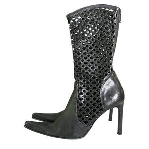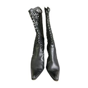 Luzzi Leather Mid Calf Pointed Toe Boots Black IT 37 US 5.5 Western Y2K Italy