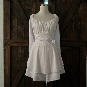 Lyaner long Sleeve Soft Solid Color U Neck Falbala Short Dress Maxi Dress Wrap