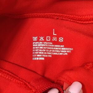 Lycra Queenieke Red Women's LG Long Sleeve Workout Shirt Half Zip Athletic Slim fit lightweight yoga sports training running exercise gym hiking casual high collar 87% nylon 13% lycra wash separately inside out