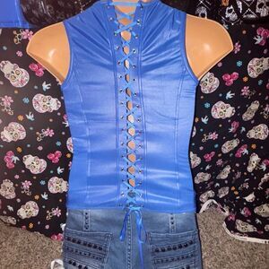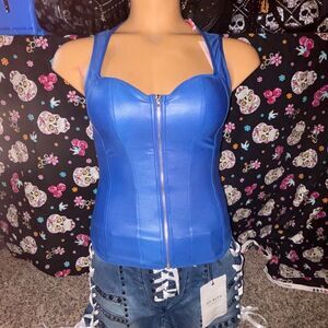 Lydia USA Front Zip Tie Back Corset Royal Blue