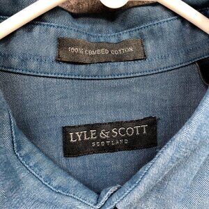 Lyle And Scott Button Down Shirt Mens L Blue Long Sleeve Combed Cotton Soft