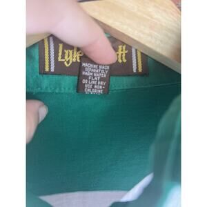 This Lyle & Scott Polo Shirt is a vintage-inspired piece perfect for any casual occasion. The color block design in green, black, and white adds a retro touch to the classic collared shirt. Made from 100% mercerized cotton jersey fabric, this medium-sized shirt features a spread collar and short sleeves for a comfortable fit. The 3-button closure and machine washable care instructions make it easy to style and care for. Ideal for all seasons, this shirt is a must-have for those who appreciate designer clothing with a 90s vibe. Excellent Condition.