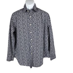 Draft ListingLyle & Scott size L 100% cotton button up . Button cuffs. Dark blue with white flower and made in India. Logo buttons. Pit to pit  26” and length 32.5”. Minimal wear.