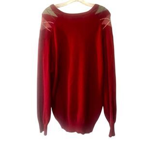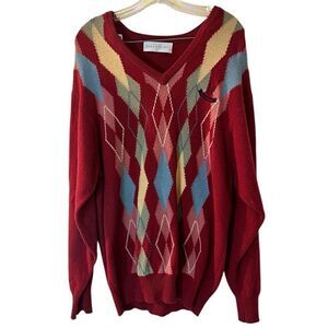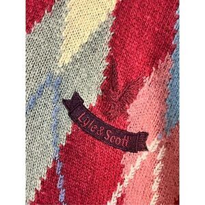 Lyle & Scott 100% Pure Lambswool Argyle V Neck Burgundy Sweater Vintage Sz M Log