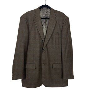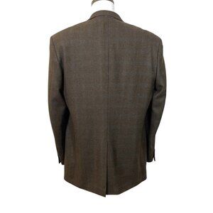 Lyle & Scott Blazer Sport Coat Cashmere Silk Wool Blend Brown Windowpane 42 Long