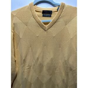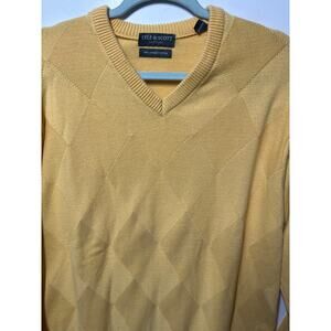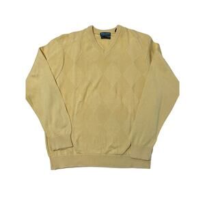 Lyle & Scott Men's Northern Isles Gold Cotton V-Neck Sweater Pullover Size L