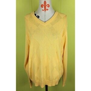Vintage men's golf argyle pullover sweater by Lyle & Scott, Scotland, made of combed cotton. Attractive yellow color.