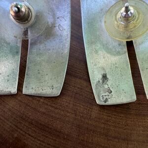 Lynda Fullerton & Bahr Sterling Silver Pearl Pierced Earrings Statement Asian