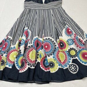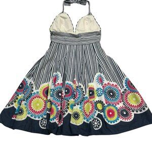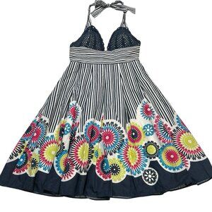 Lyndia Procanik Y2K Dress Womens 4 Blue Mixed Floral Striped Crochet Mini Boho