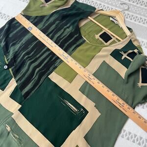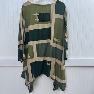 Lyng 2X Abstract Patchwork Tunic Green Lagenlook Maximalist Art To Wear Blouse