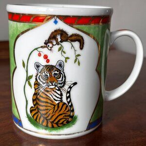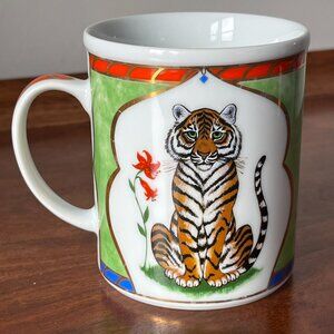 Lynn Chase 1991 “Tiger Raj" Mug Decorated With 24K Gold Vintage Coffee Cup 10 oz