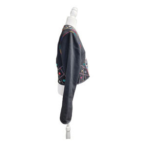 Lynn Murray Women's Button Funky Mixed Media Blazer Jacket Black Size Medium