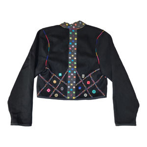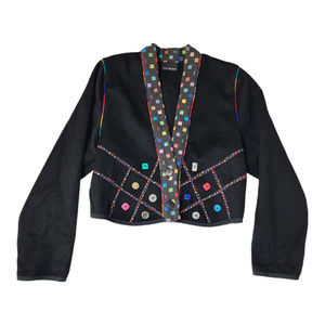 Lynn Murray Women's Funky Button Mixed Media Blazer Jacket Black Size Medium