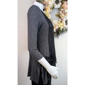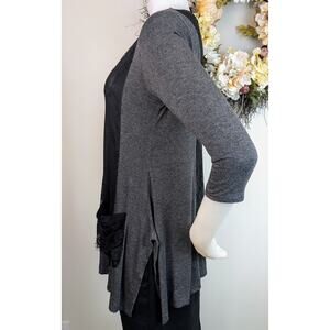 Lynn Ritchie Silver Heather Gray Black Lace Flowy Jersey Tunic Top Size Medium