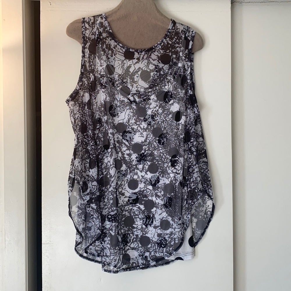 This tunic has two pieces that could be separated, one under tunic with polka dots and one black and white patterned top