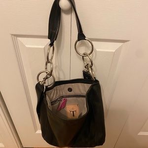 Lynn Tallerico 'Evan Small Cross Body Shoulder Bag' Black bullhide leather