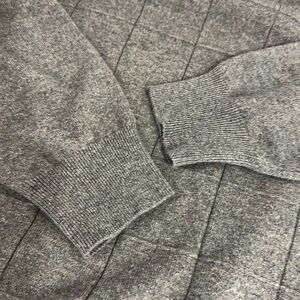 This is a men’s cashmere sweater in a rich brown color. It features a classic crew neckline and long sleeves with ribbed cuffs. The design includes a subtle vertical panel and grid-like knit pattern down the front, giving it texture and structure. The hem is ribbed for a comfortable fit, making it a timeless and versatile piece perfect for layering or wearing on its own
