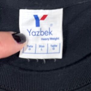 Classic Lynyrd Skynyrd Yazbek band tee, size Large. Features bold distressed front graphic with “Free Bird,” “Simple Man,” and “1973” on black cotton. Short sleeve, crew neck, 100% cotton. Perfect for fans of Southern rock, vintage band tee collectors, or casual wear.