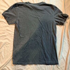Color: Dark faded vintage wash charcoal grey with multi-color lettering graphic on front and contrast stitching