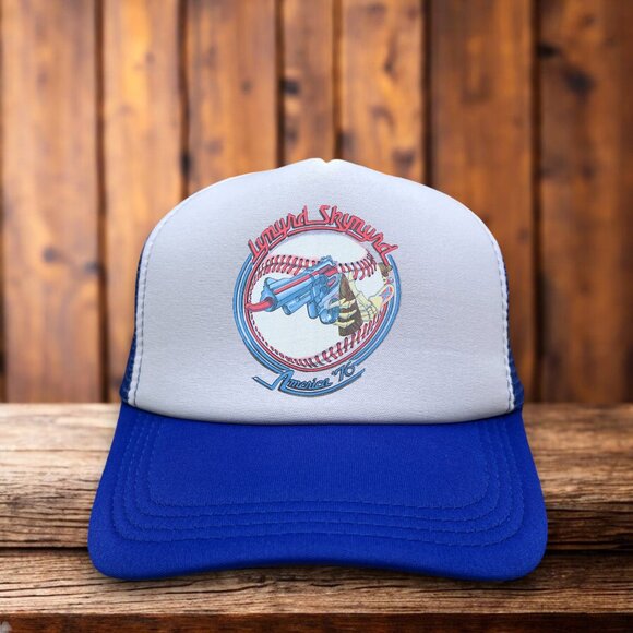 Lynyrd Skynyrd Mens Trucker Hat Blue Snapback 70s America Tour Baseball Cap