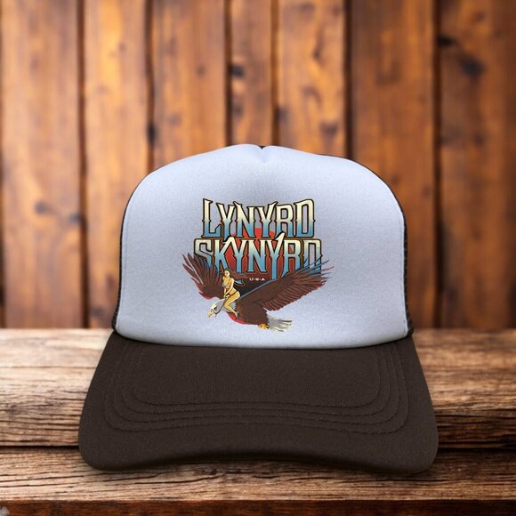 Lynyrd Skynyrd Mens Trucker Hat Brown Snapback Pin Up Girl Eagle Southern Rock