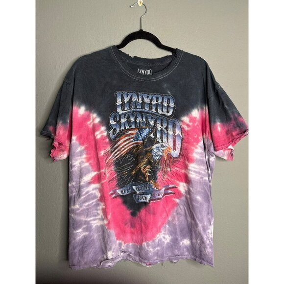 Lynyrd Skynyrd Unisex Large Tie Dye Eagle Distressed USA Flag Oversized