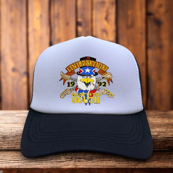 Lynyrd Skynyrd Unisex Trucker Hat Black Snapback 1992 Tour Made In The USA Cap
