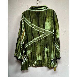 Lynz Women's Popover Geo Print Tunic Top Large Green Long Sleeve Lightweight