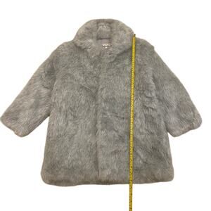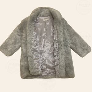 Wrap yourself in timeless vintage luxury with this Lyre Bird Tianjin faux fur coat, crafted in a soft gray-silver tone with a plush, silky texture and elegant satin lining. This coat features metal hook-and-eye front closures and a relaxed swing silhouette that drapes beautifully.