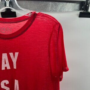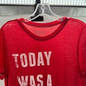 Lyric Culture Red Label 'Good Day' Pullover Tee Red/White Size Large Semi Sheer