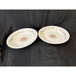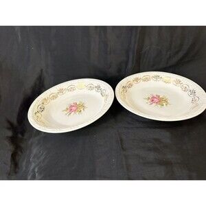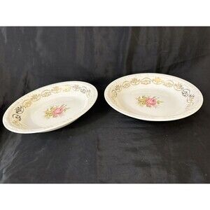 Lyric Vintage Flower Rose Soup Bowl Warranted 22K Gold 8" Diameter