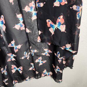 Lyss Loo Kimono Cardigan Womens 3X Black Sheer Butterfly Print Made in USA K0111