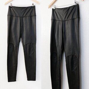 Lysse Black High Waist Wide Waistband Textured Faux Leather Pant Leggings $108 S