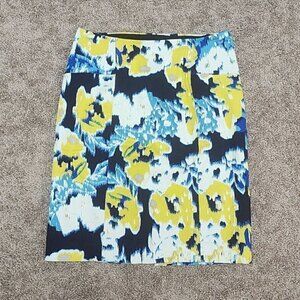 Lysse Charity Pencil Skirt Navy Yellow Abstract Floral Elastic Waist Medium