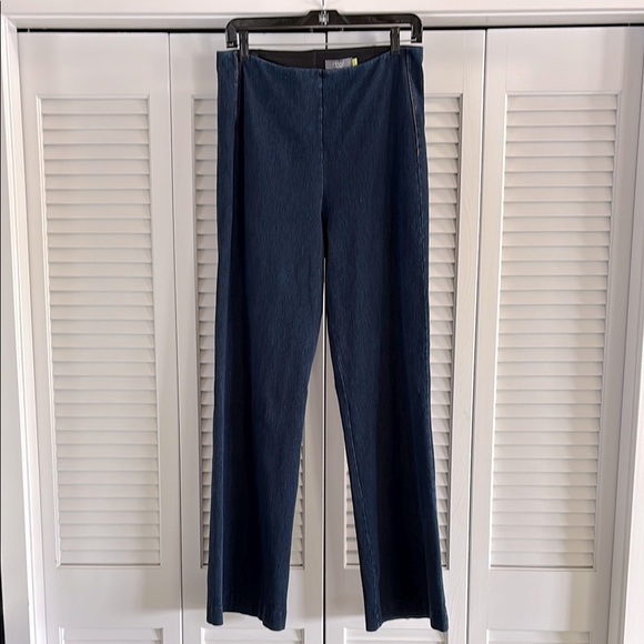 When the typical jean just isn't enough, look to the Lysse Denim Trouser to exude an elevated, polished vibe. These bottoms pull on easily, are made from 4-way stretch Knit Denim and have no side seams. The seams are shifted to the front of the pant for the illusion of slimmer hips. The Denim Trouser skims the hip and thighs before falling into a trouser leg and features back welt pockets. Gently worn and in great condition. Women’s size large with 33” inseam.