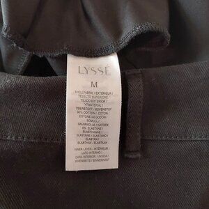 Size med Lysse Erin High Waist Wide Leg Denim Black Pants. 95% cotton 5% spandex. Pull-on style. 4-way stretch fit that flatters the waist and thigh before relaxing into an extra wide leg. Featuring a high rise with a concealed patented waistband and signature fit. Back patch pockets. Waist 14" Rise 12.5" Inseam 28" Leg opening 12" Very good pre-owned condition.