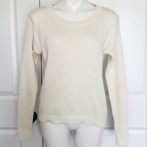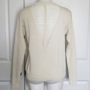 Lysse Ivory Cream Carson Sweater Distressed Drop Stitch V Back Cotton Blend M