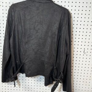 Lysse Moto Jacket Womens Faux Suede Black Belted Size L