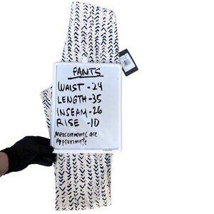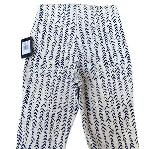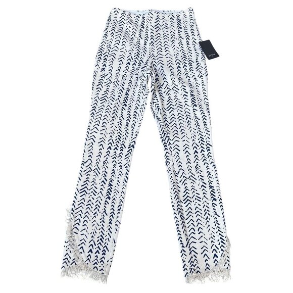 Lysse New York New With Tags Womens Size Small White With Blue Geometric Print Fringe Tulip Hem Ankle Pants Stretch Leggings Costal Cowgirl Retro Jackie Kennedy