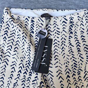 Lysse New York NWT Womens S Blue Geometric Print Fringe Tulip Hem Ankle Pants