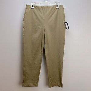 Lysse Olive Amber Crop Pants Pull On Pockets Stretch Twill Smoothing Waist Large
