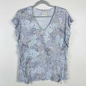 Lysse Size Small White Floral Sullivan Jersey Ruffle Tee Top Short Sleeve Casual