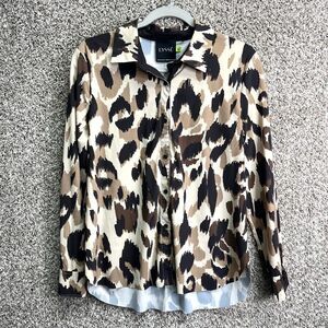 Excellent used Condition Women’s Lysse Connie Brown Leopard Print Long Sleeve Slim Button Down Shirt in Size Medium