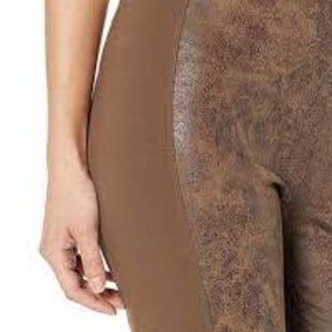 Lysse Trent Ponte Knit Leggings Faux Embossed Suede Bison Brown Size Large