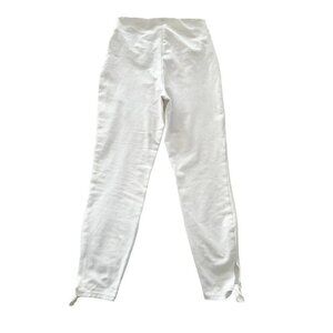 Lysse Dela Tie Cuff Leggings in white. Leggings are made of a cotton spandex blend and are a woman's size small.