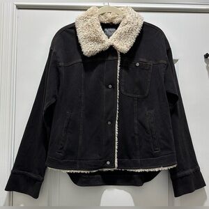 Lysse’New York black denim Andi jacket with fur trim Large NWT $158