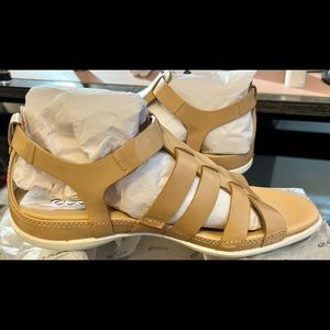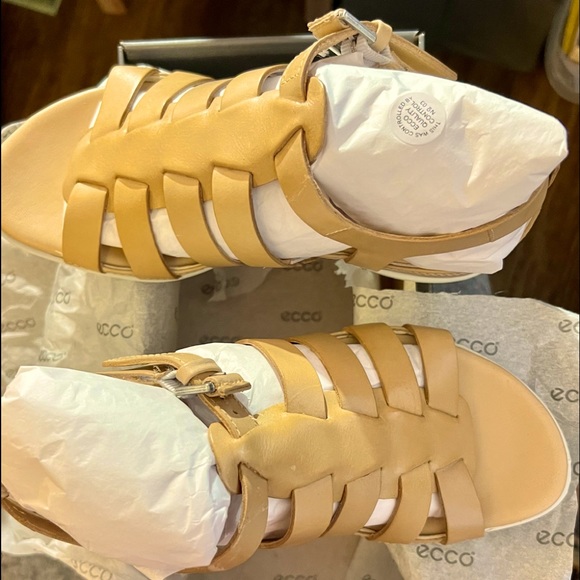 Brand new still in original packaging and box. Very pretty Tan leather. Very versatile for any occasion. Never been worn. Amens size 4-4.5.