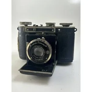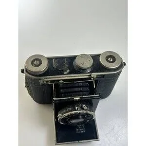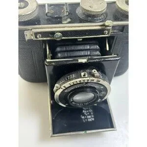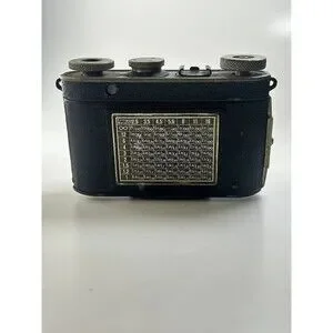 This Certo Dollina II is a classic German-made 35mm coupled rangefinder camera from the 1930s. Known for its compact folding design and precise engineering, this model features a top-mounted rangefinder and a Compur Rapid shutter by F. Deckel-München. The camera is fitted with a Schneider-Kreuznach Xenar 50mm f/1.9 lens.The back of the camera retains its original exposure table. Due to its advanced age and physical wear, this unit is a prime candidate for a complete restoration or would serve as a high-character display piece for a vintage photography collection