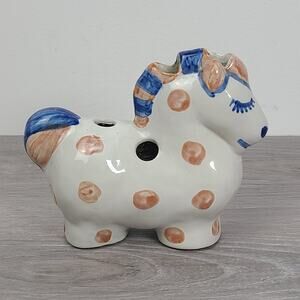M A Hadley Pottery Horse Flower Frog Holder Blue Brown Stripes Spotted